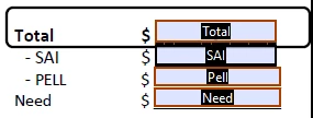 I need a javascript for Complex Calculation where Total + SAI + Pell = Need; but if SAI is a negative number, treat as zero. Can anyone please assist me?