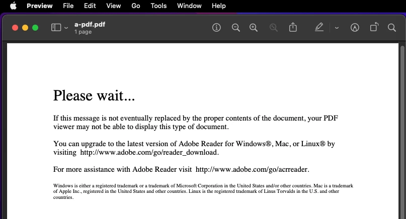 I have to fill a PDF form in Dynamic XML format, which can only be opened with Adobe Acrobat. If you open it in other apps, it will show you: