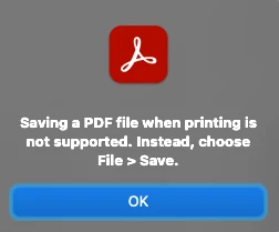 After I downloaded and finished the PDF in the free Adobe Acrobat Reader DC. I have to save a static PDF to submit it. However, I tried many different methods. Nothing works. My system and software versions are: