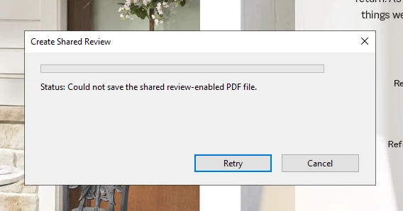 Help! I am the admin for a Shared Sign Off review we run frequently at my company and suddenly can't send any PDFs out for review due to this prompt. have already tried as an admin to no avail. I've seen another post on this subject but no solution was provided. We have a big book coming up for review and I'm hoping to reslove this quickly. -Thanks, Hunter