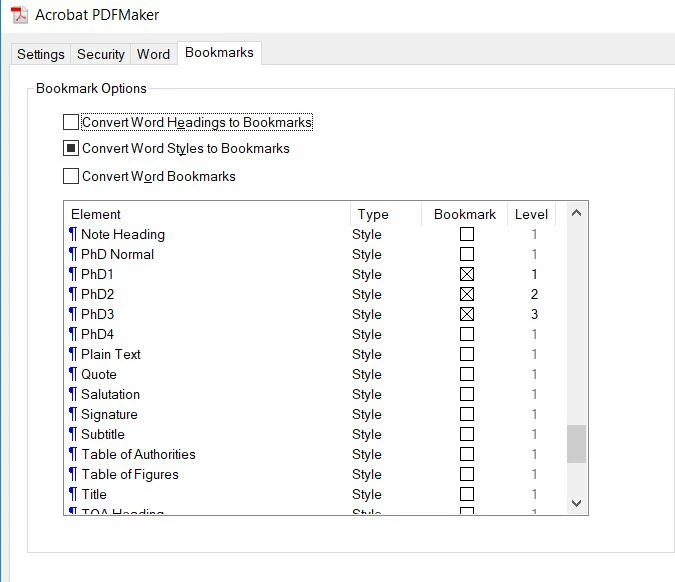 CreatePDF from Word using word styles is adding characters to bookmarks