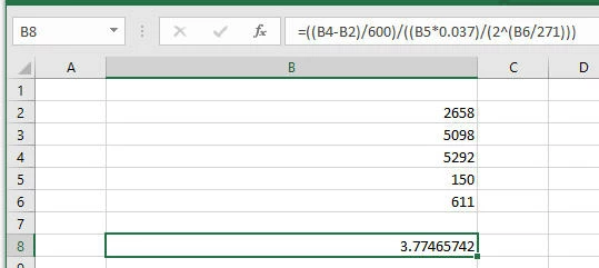 event.value = ((getField("C").value - getField("A").value ) / 600) / ((getField("D").value * 0.037) / (2 ^ (getField("E").value / 271)))