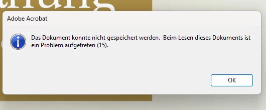 das Dokument konnte nicht gespeichert werden. Beim Lesen dieses Dokuments ist ein Fehler aufgetreten (15).