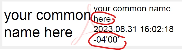 Digital signature appearance - Name and date on two lines