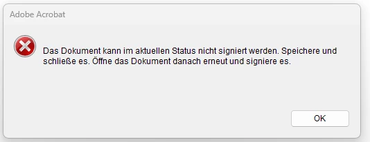 Dokument kann im aktuellen Status nicht signiert werden