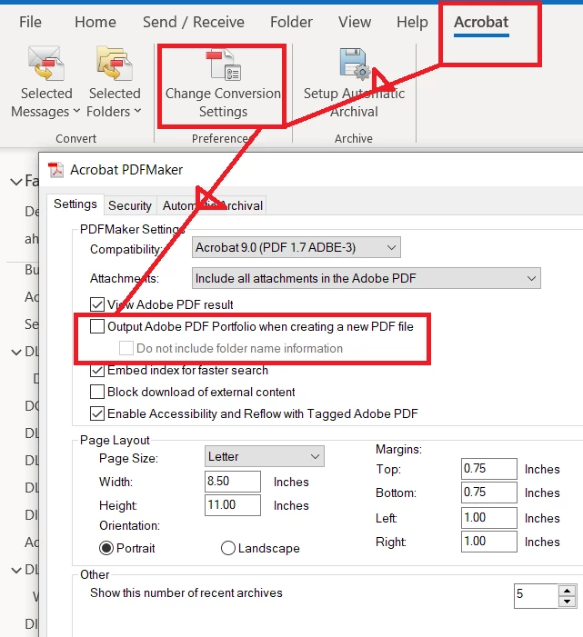 When I save an email from Outlook as a pdf, Acrobat creates a portfolio containing one file.