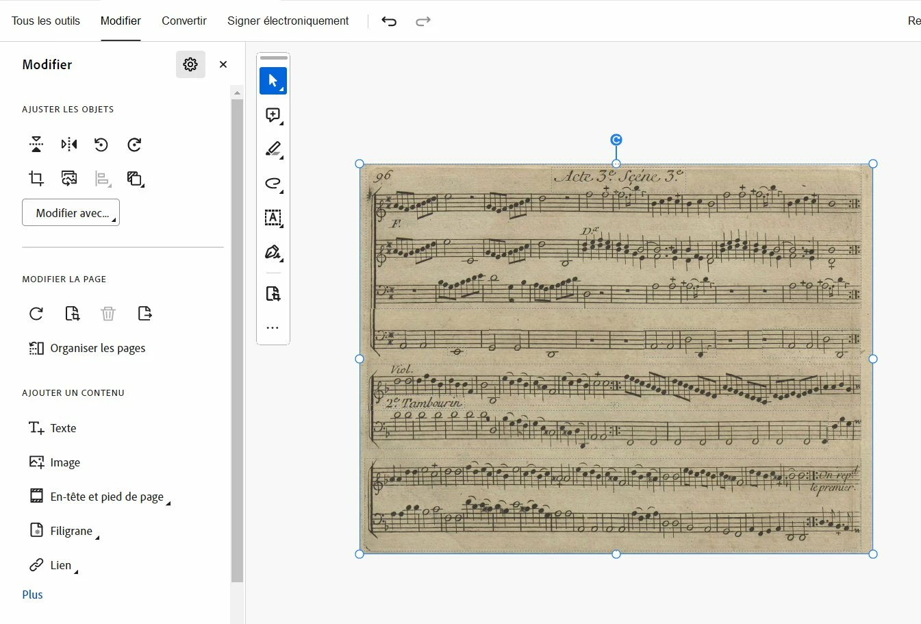 In Acrobat Pro, in Edit Mode, I first select all the page :