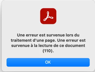 I just bought this Mac, I have the last version of Acrobat DC PRo and I get error 110 while I want to open PDF files sent by a provider.