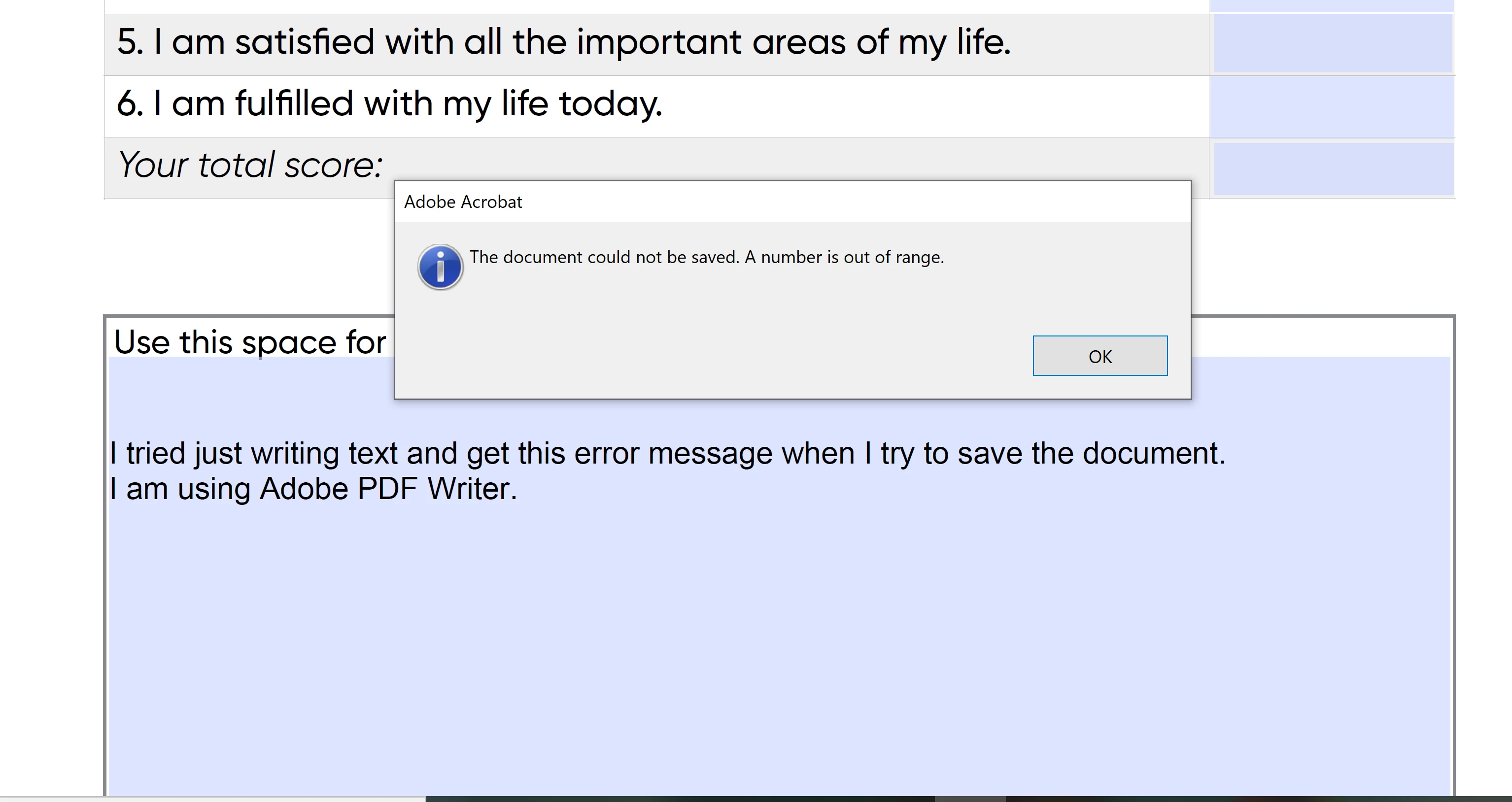 I have pasted an image of an error i am receivng when completing a PDF form that was designed as a workbook.