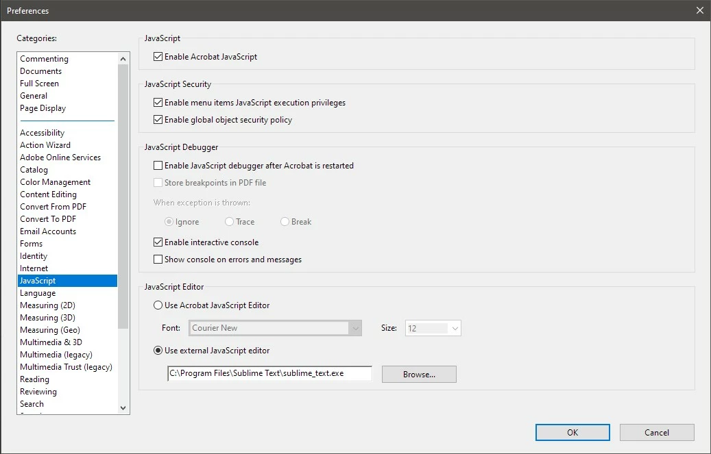I've been using Acrobat for years and have never had an issue where the external editor will not open.