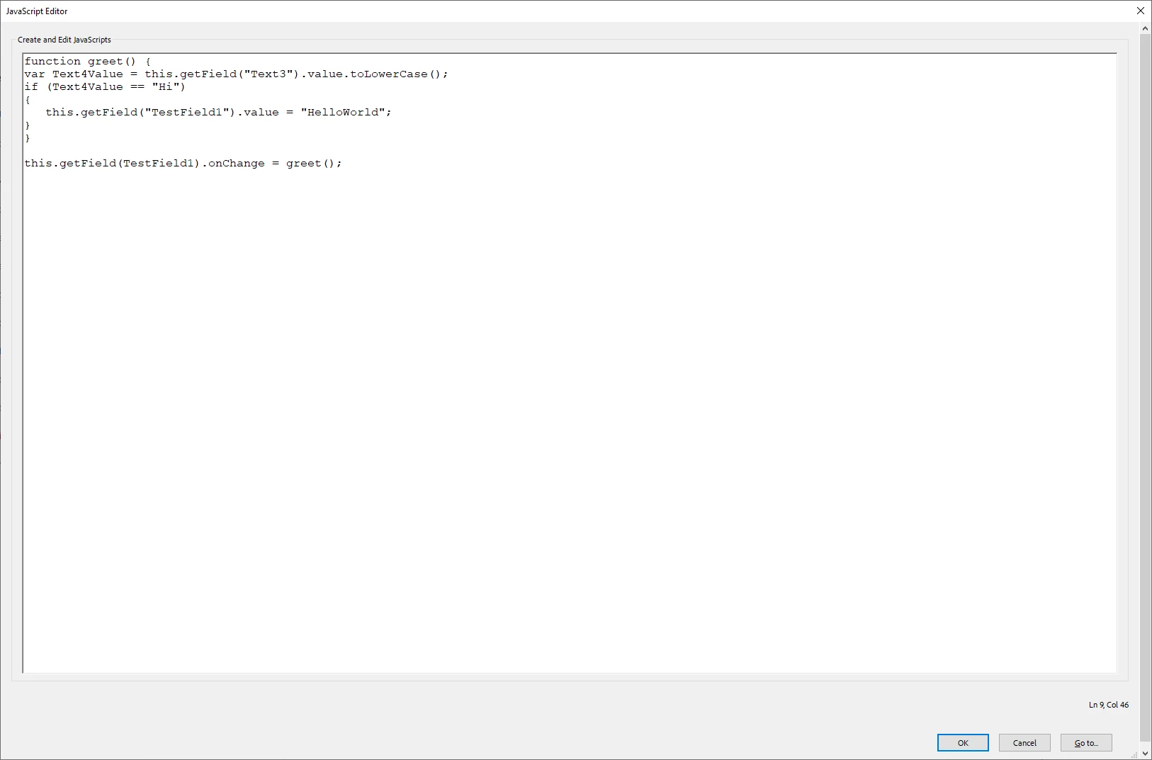 I'm trying to make a piece of javascript code that can read what's on the text field, and then auto complete to a much longer sentence.