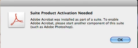 Adobe Acrobat was installed as part of a suite. To enable Adobe Acrobat, please start another component of this suite (such as Adobe Photoshop)."