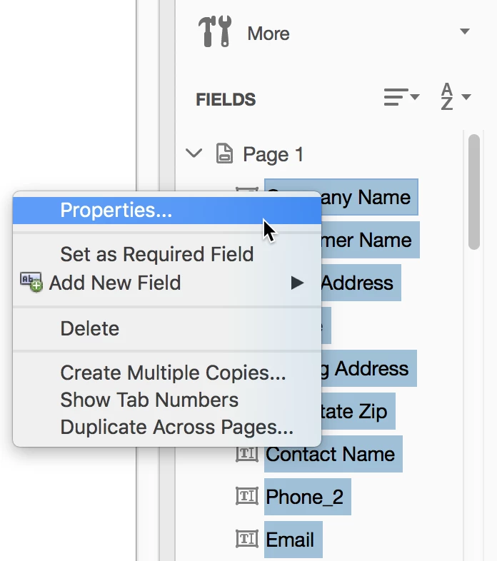 - Right-click on one of the fields and choose Properties and make the changes to Appearance