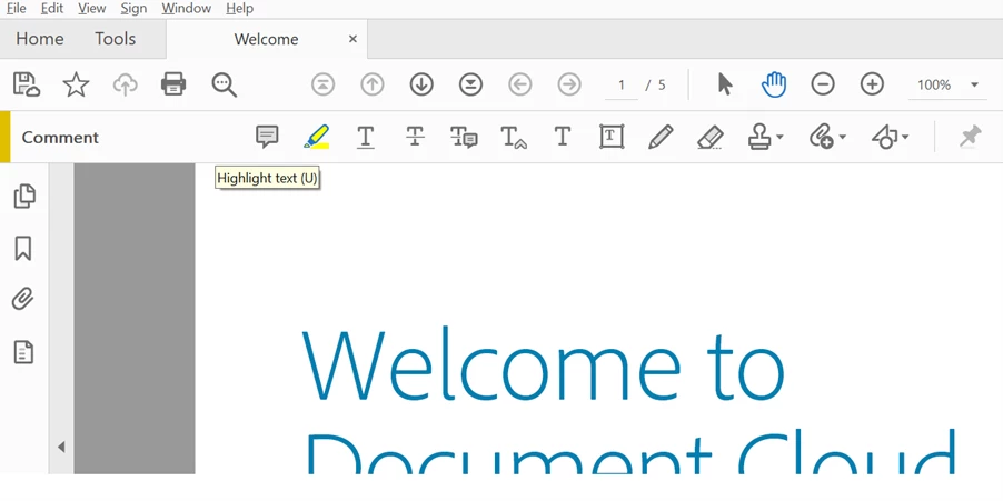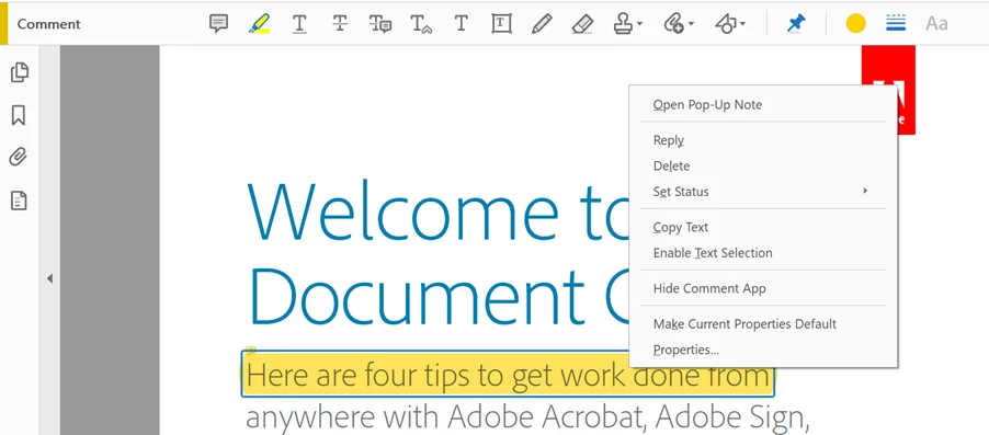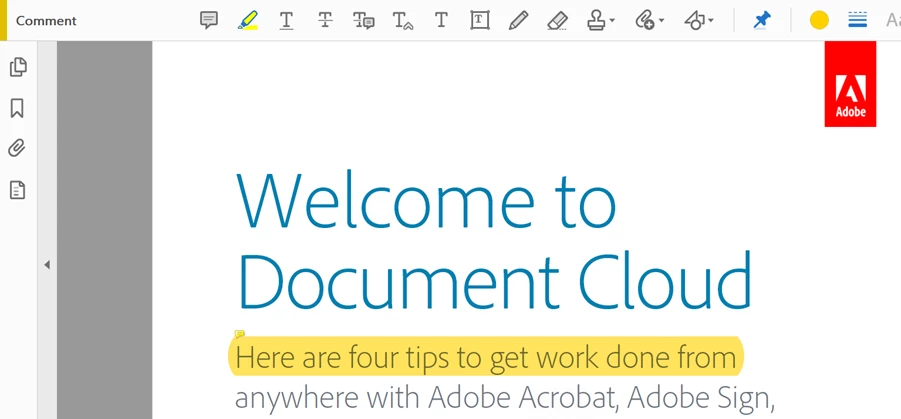 Add comments to PDF files with highlights, sticky notes, a freehand drawing tool, and mark-up tools.