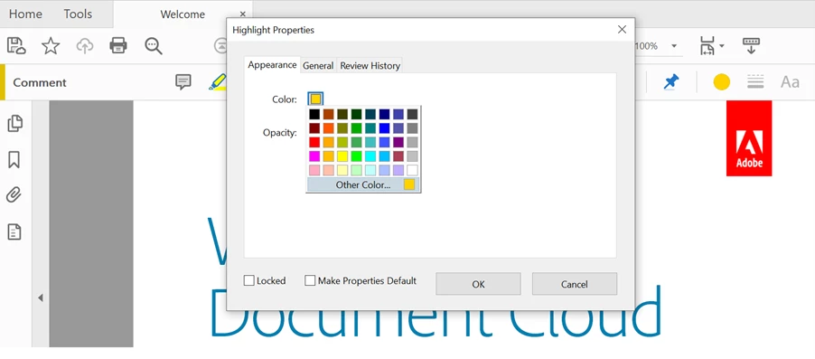 - On the Highlight Properties dialog, select the color from the Color panel and click OK.