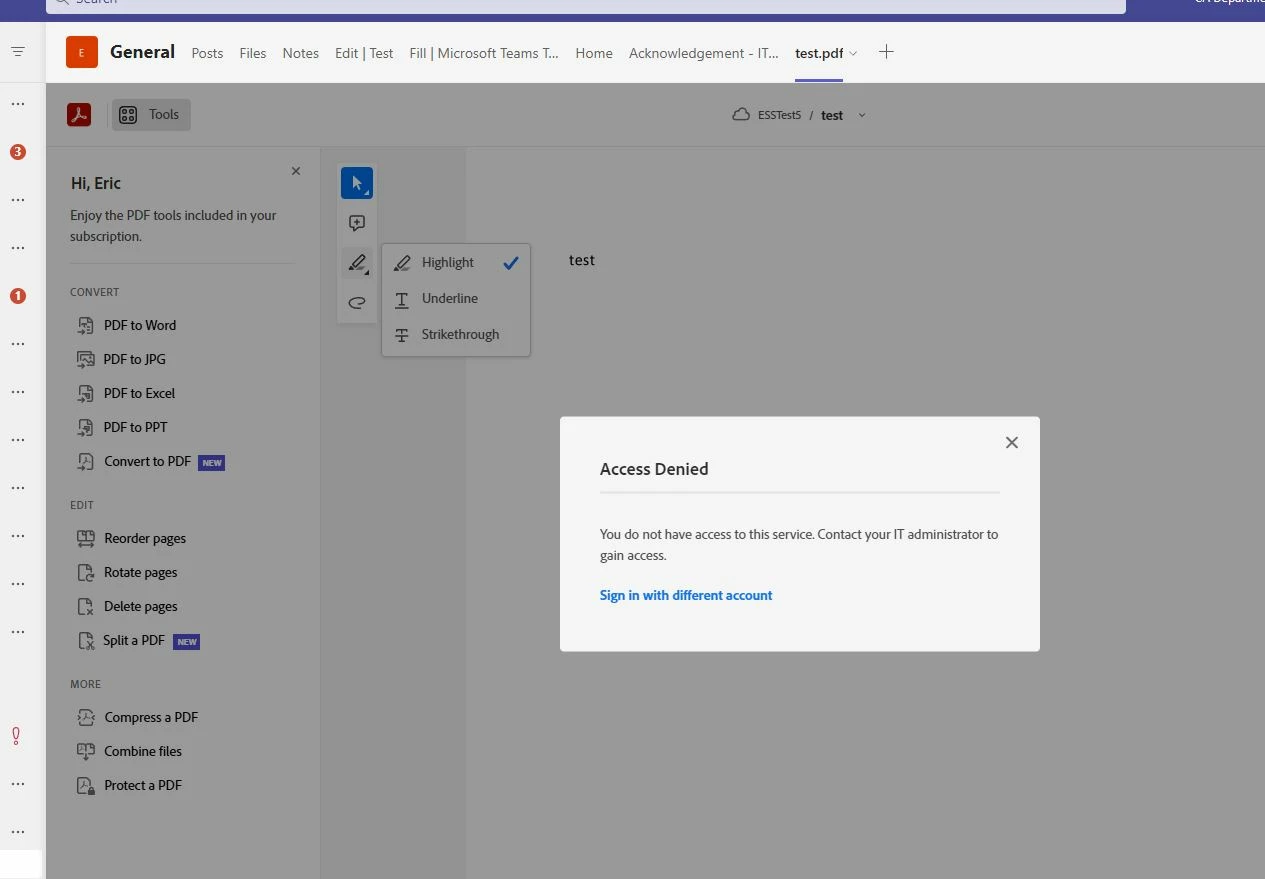 How to get Adobe Acrobat to work within MS Teams