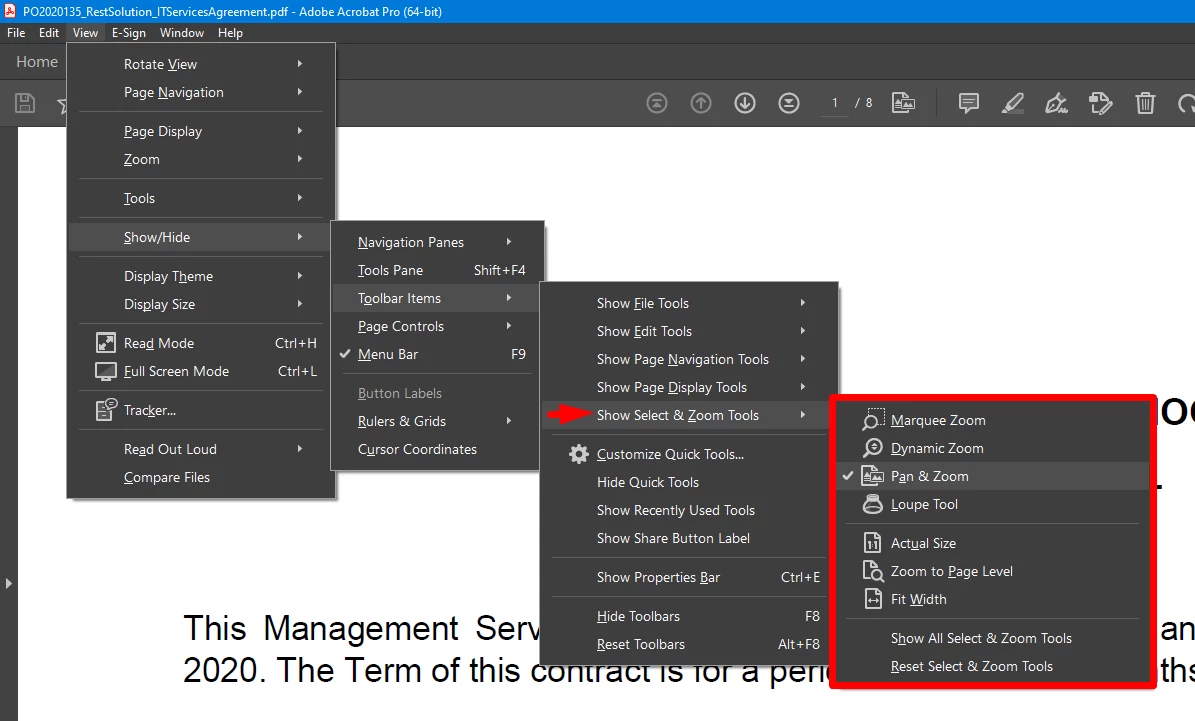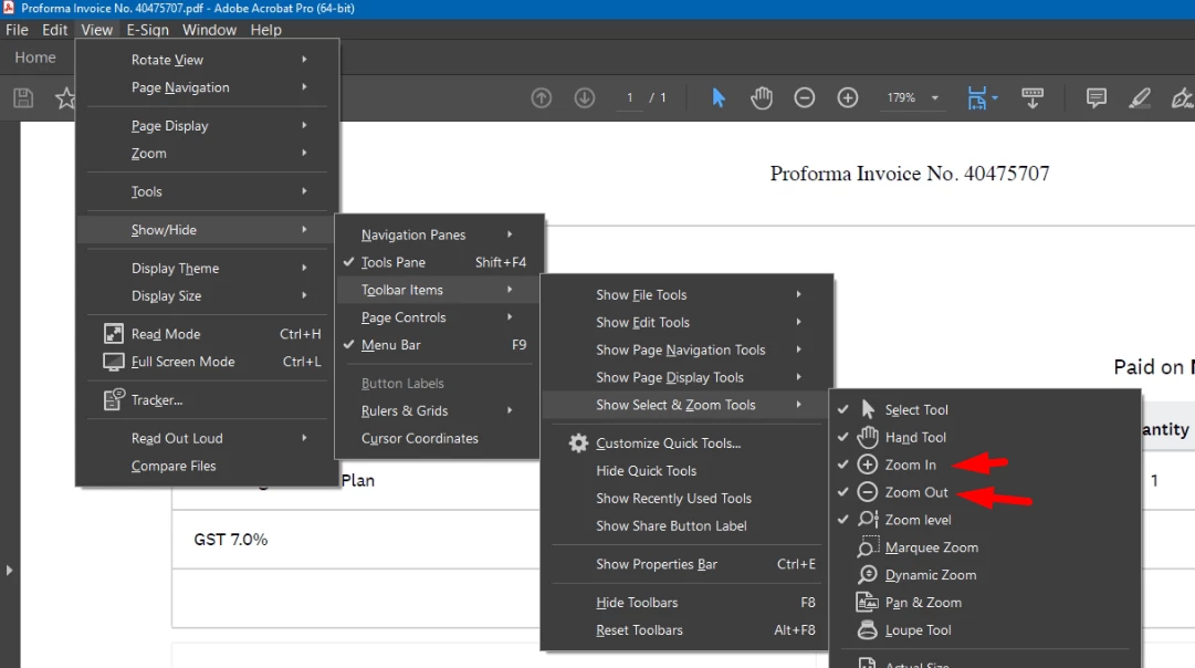 How to get the + and - buttons back in Acrobat Pro? (Different menus)