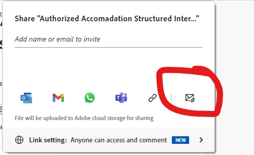 When I have the pdf file open and I click File, Share File, the only sharing option is thorugh the adobe cloud or something. I just want to share the file by email, as an attachment. Is it too much to ask? How can I do that direclty from the pdf file itself? As preview and other softwares do.
