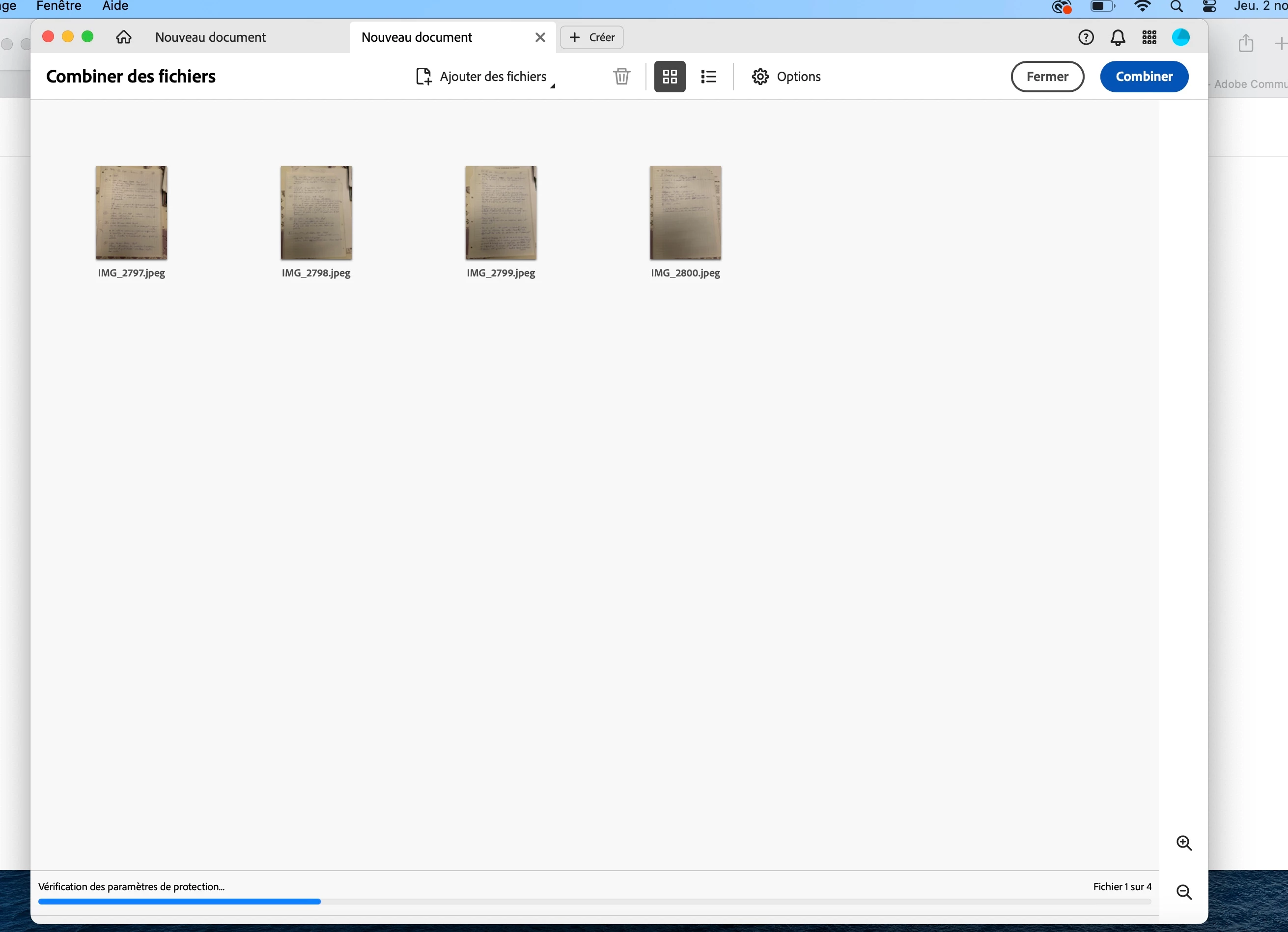 lorsque j'essaye de combiner des fichiers pour créer un pdf depuis les dernières mises à jour de mac vers sonoma, cela ne foncitonne pas et reste bloqué sur "Vérification des paramètres de protection".