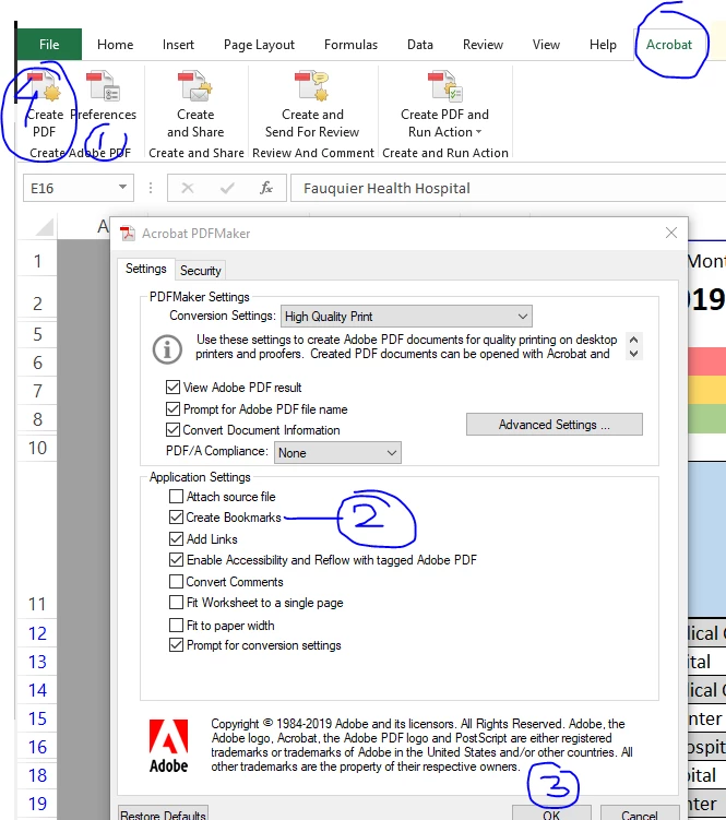 Goal: I am using Adobe Acrobat excel ribbon tab to create a pdf from an excel file with 17 tabs. I want to create an adobe file with all 17 tabs as a bookmark in pdf then also create 17 different files extracts from the one adobe pdf using orignialfilename_BookmarkName. Adobe pdf can do right now bookmark only or label with the original filename.