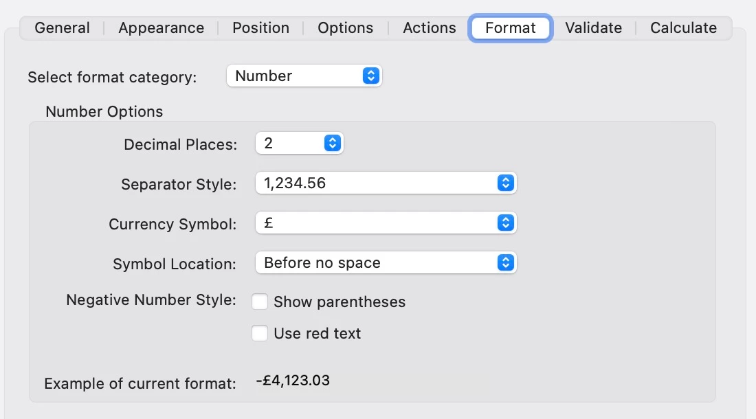 I've attached a screengrab of the form, how the boxes are formatted and the code is worded (below)