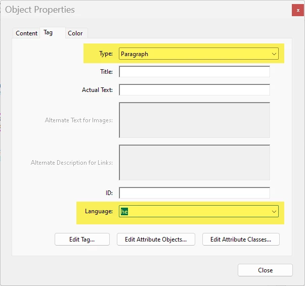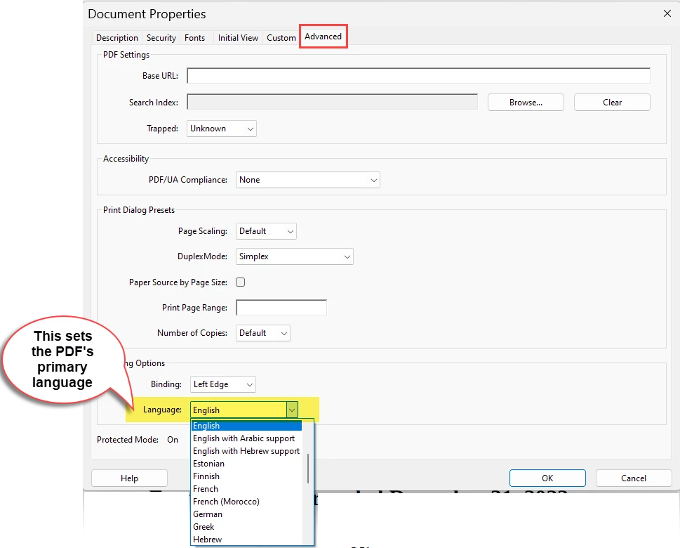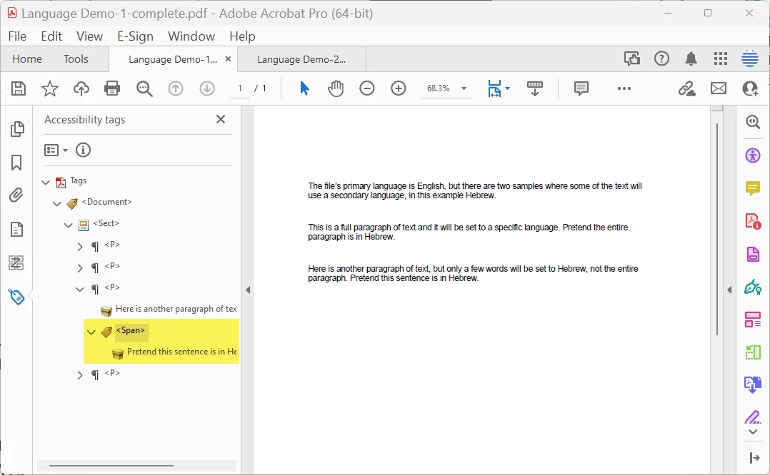 But this has been a long-standing bug with both companies for a really long time. The language tags are not converted into the exported PDF and we end up with these manual workarounds in Acrobat (which has its own bugs) that are detailed above.