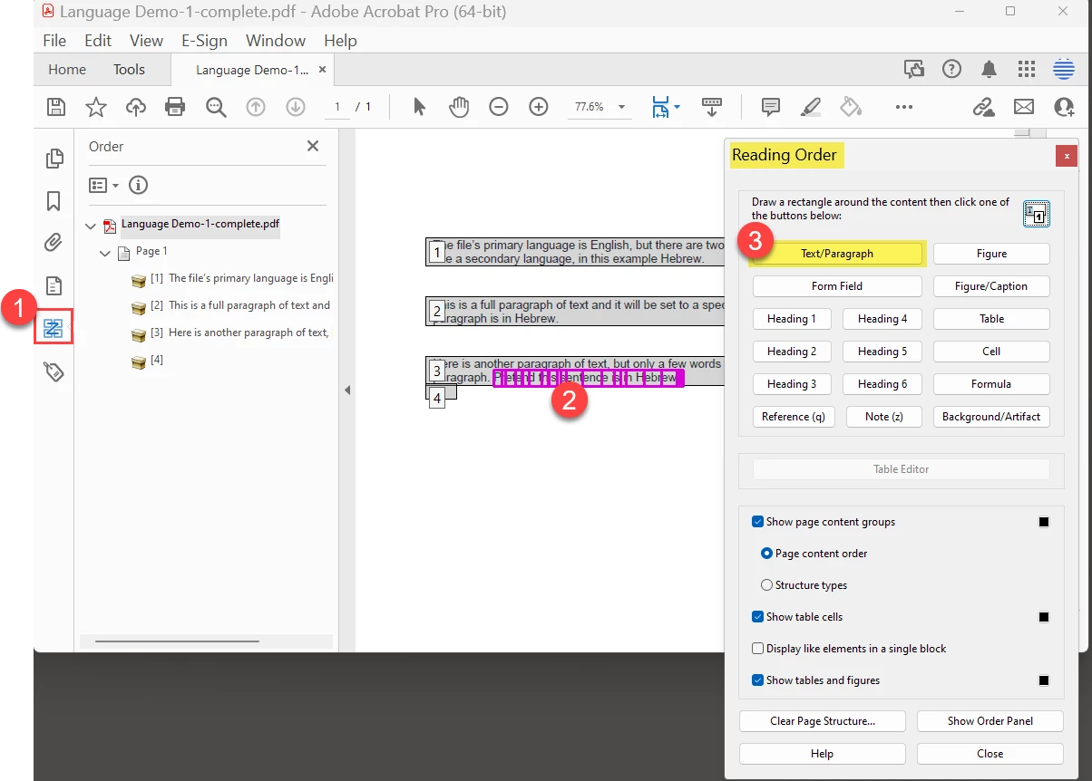 Step 1: From the Order Panel, open the Reading Order tools panel.