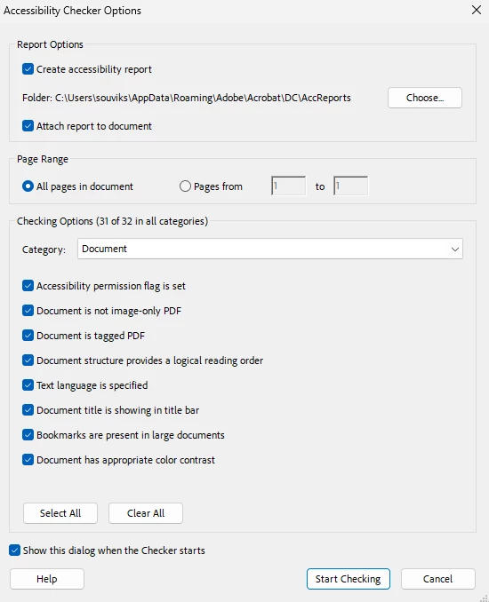 Adobe’s Accessibility Checker Behavior: