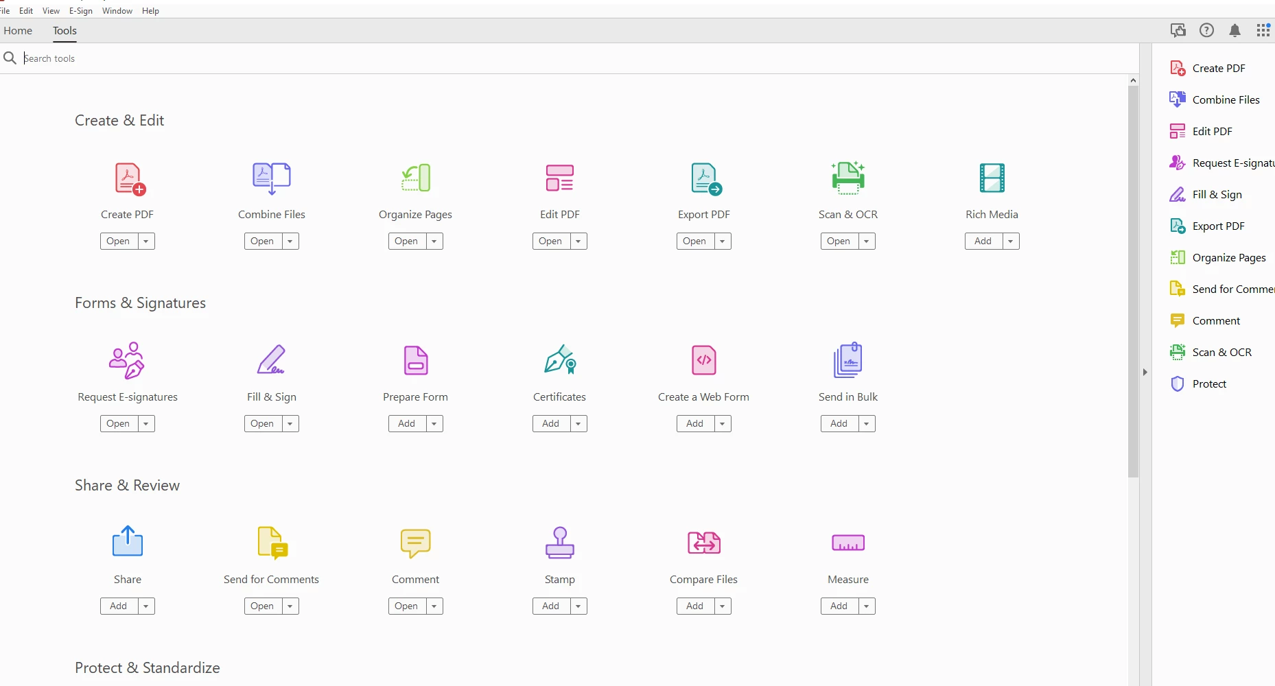Please see the screenshots below from Adobe Acrobat Tools. The first screenshot is mine and the other one is my co-workers. As you can see I'm missing a lot of features. Can you please look into this?