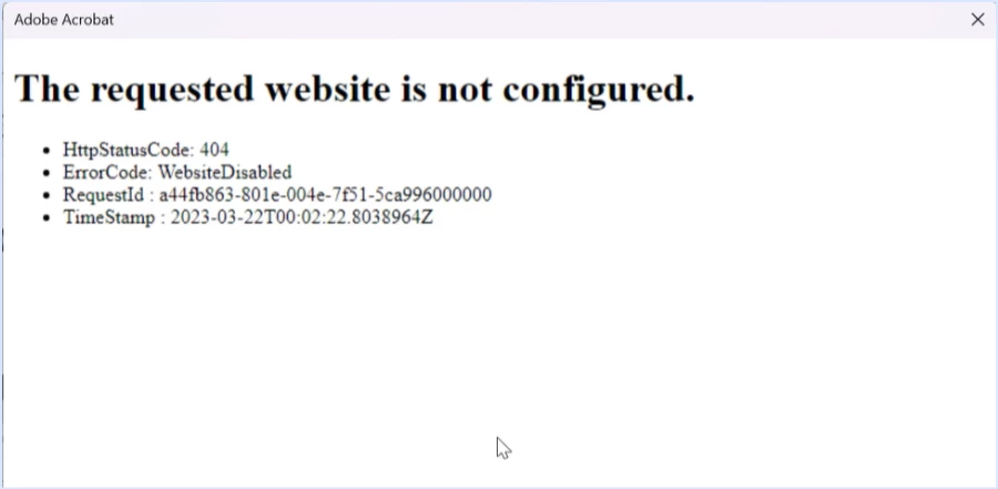 Open Adobe Acrobat with error "The requested website is not configured.".
