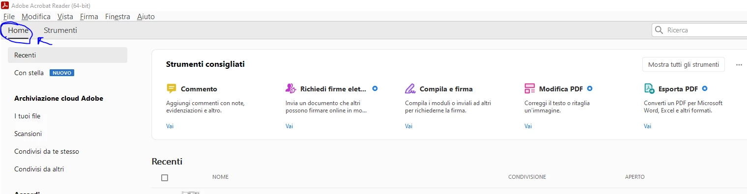 the Adobe program does not open the .pdf file for me, but it opens in the Home "view".