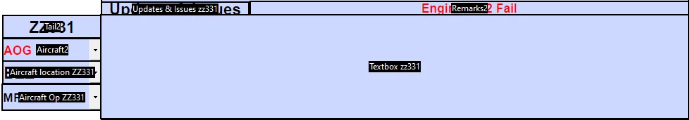 When Unserviceable is selected in the drop down box (Aircraft 2). In a text box called (Details AOG) I would like a statement created in the following format built up from ‘Tail’ – ‘Remarks’ to note there is also 14 fields for Tail an Remarks as the form is built for all 14 assets. If possible I would like this to appear or disappear depending if the A
