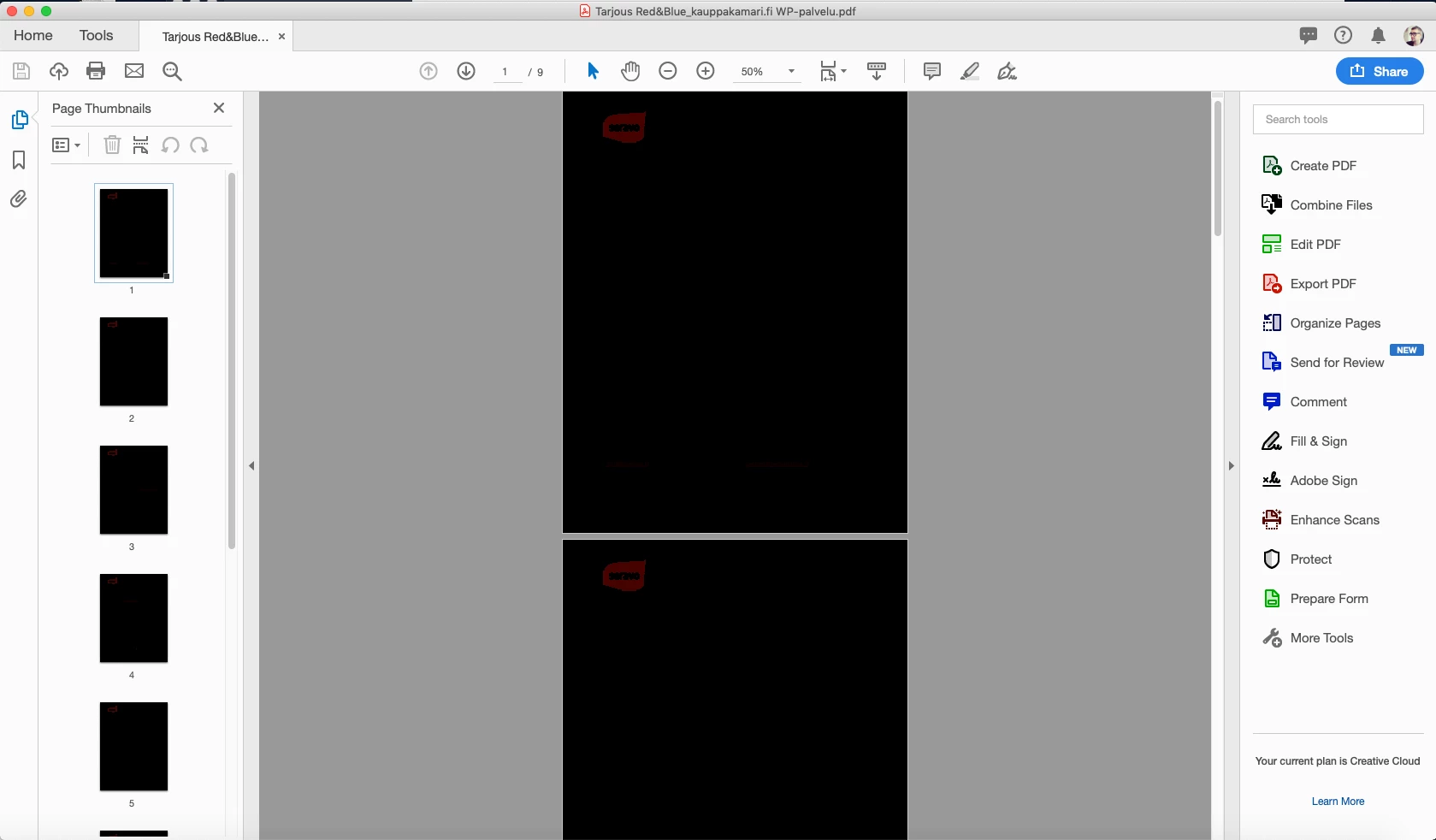 As I open PDF the screen looks black. Finders previewing looks fine.