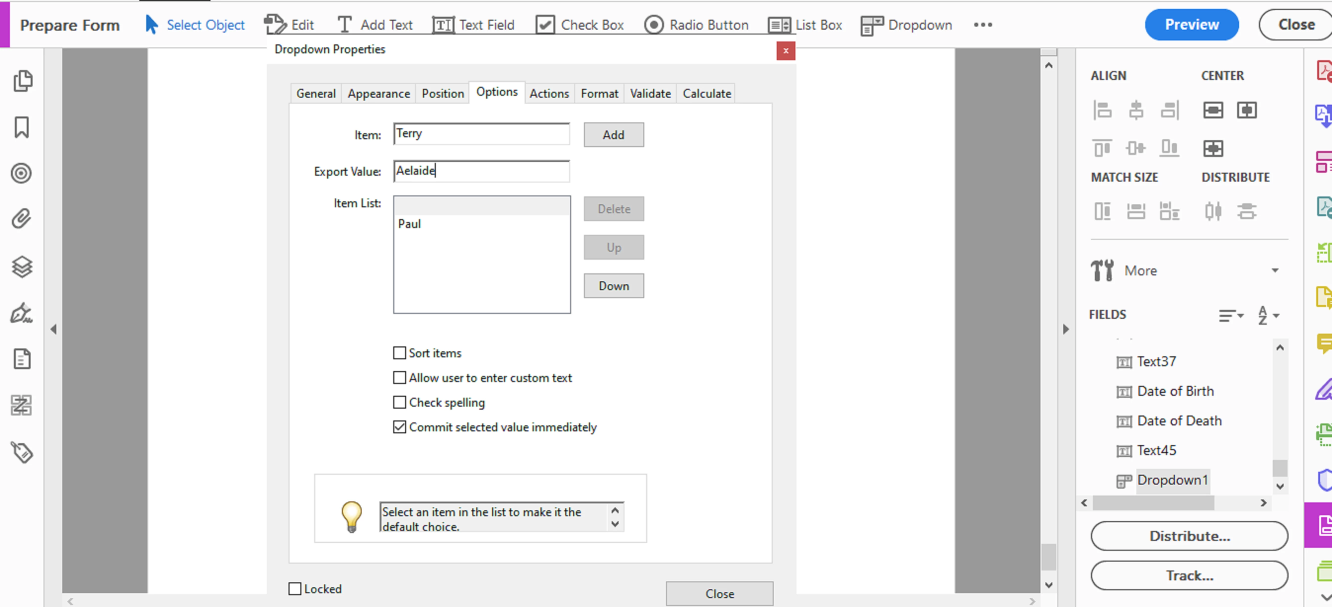I am trying to auto-populate a text field based in the dropdown box selection. i.e if "Dropdown1" selection is "Paul" then "Text1" would auto-populate with "Melbourne" if "Dropdown1" selection is "Terry" then "Text1" would auto-populate with "Adelaide" and so on.