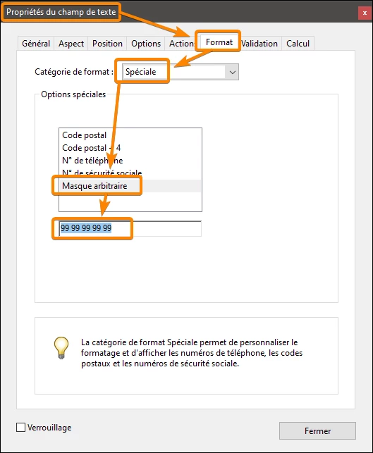 Et quand je crée un champ téléphone (dans catégorie de format), celui-ci se met ainsi : (062)222 -2222