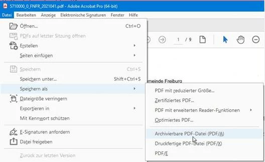 Beim Speichern von PDF/A - Dokumenten erhalten ich folgende Fehlermeldung: