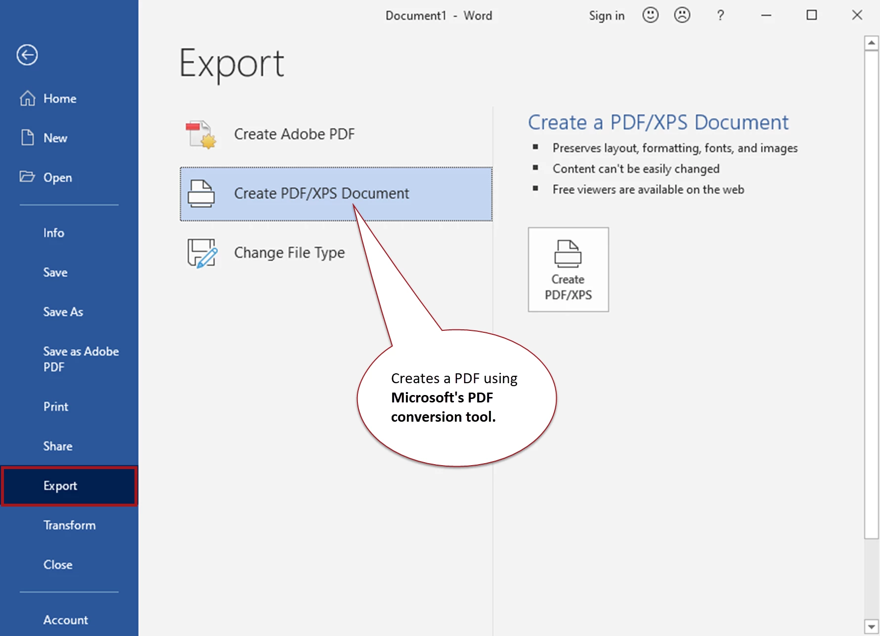 Save to PDF with the Microsoft® conversion tool