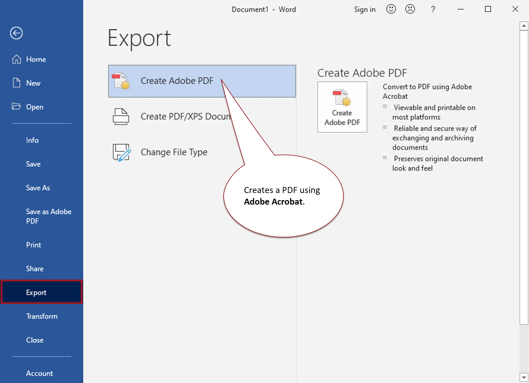 Export with Adobe® Acrobat® conversion tool