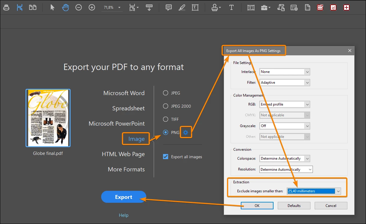 I have a large catalog I am extracting images from and most items have both a main and smaller detail image. All the larger image sizes export fine, but non of the smaller images are exporting. They are .png images. Any idea if there is a setting somewhere to adjust minimun image export size, or any other tricks for this? I am trying really hard to keep from having to manually extract hundreds of these. Any help appreciated.