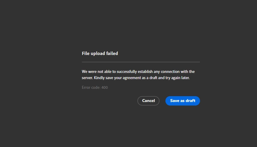 "FILE UPLOAD FAILED" Error 400 when trying to send document via E-Signature