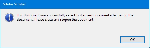 Document saves, but I am getting alerts from Enfocus PitStop Pro and Acrobat that blocks the program