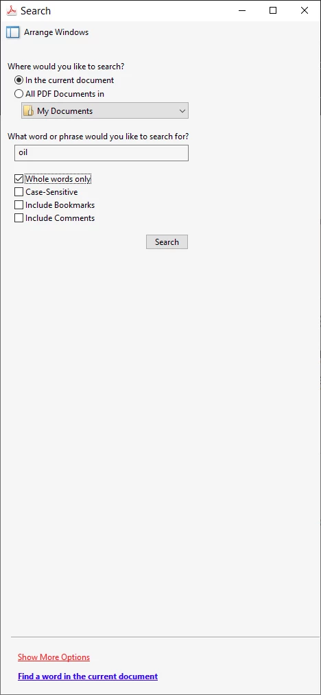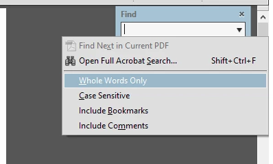 Searching for specific text in Adobe Acrobat Reader is getting tons of unwanted results