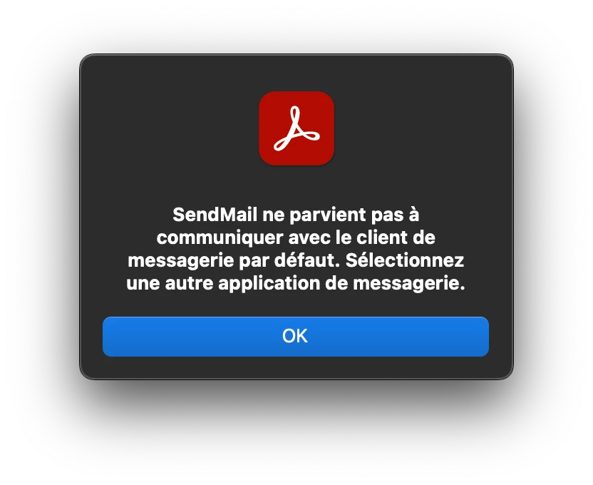 SendMail ne parvient pas à communiquer avec le client de messagerie par défaut.