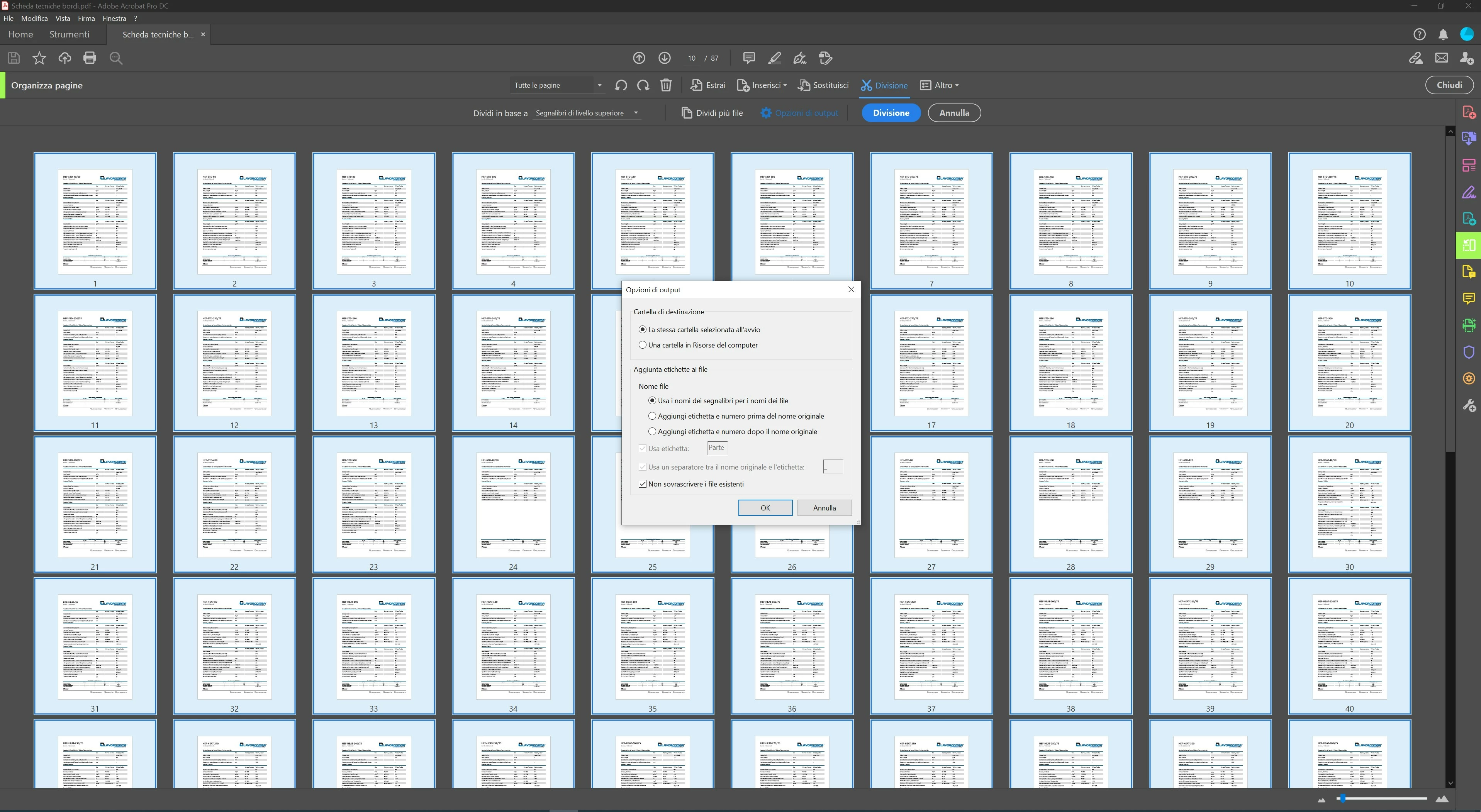 clicking on the split button divides me only the last page of my file renaming it correctly but not everything else.