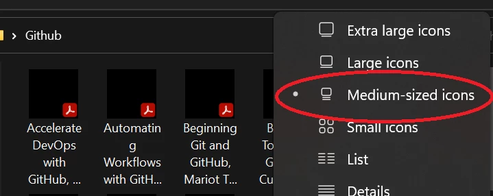 Q. Is this correct? This used to work in Windows 10 (Medium view for folders shows a preview image of the file).
