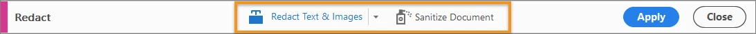 - The decluttered Redact tool now shows only the two main options in the toolbar: Redact Text & Images and Sanitize Document.
