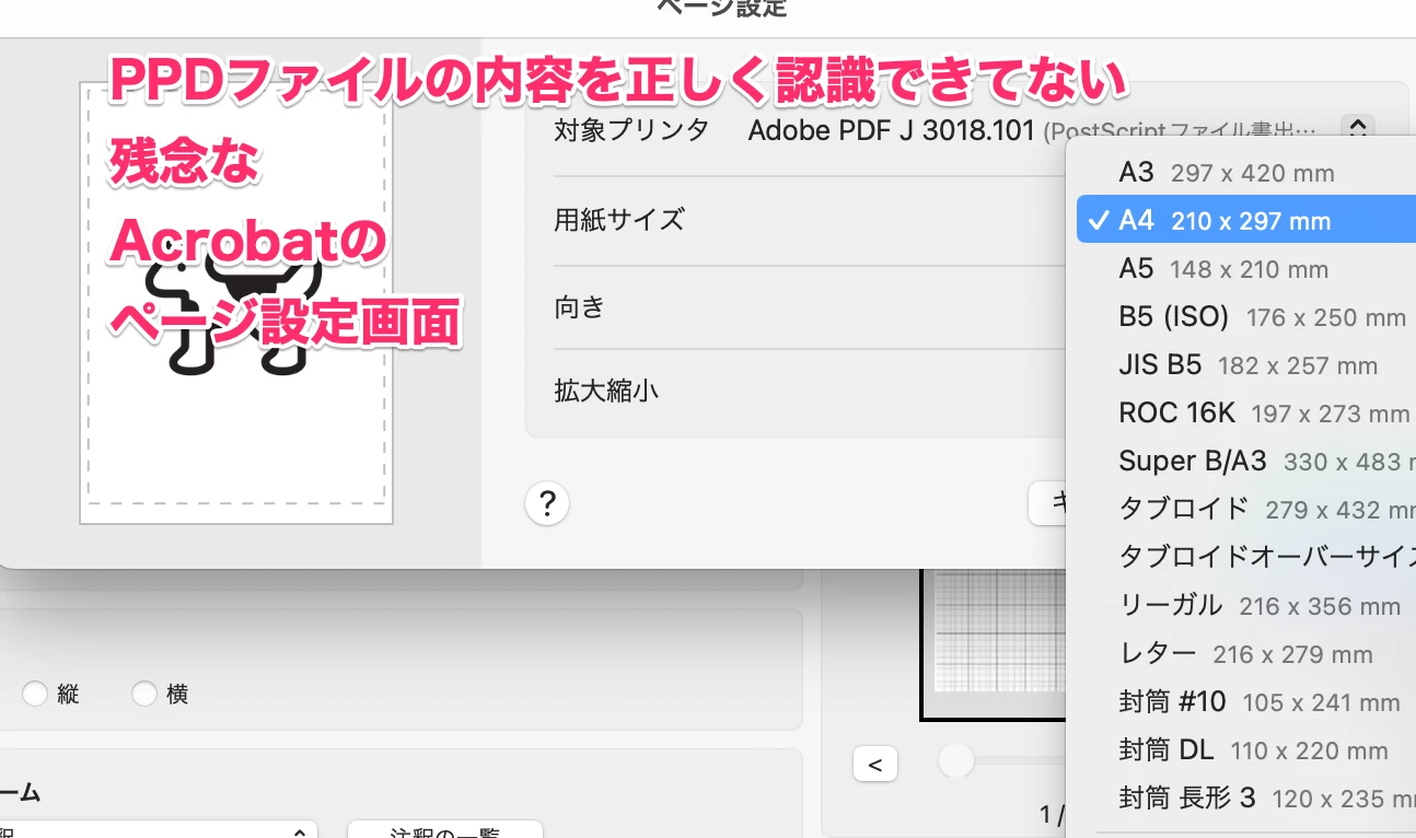 正しく(意図する)表示は(PPDに設定されている用紙サイズが全て表示される)