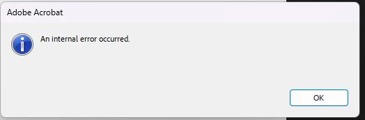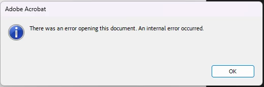 I tried opening a .pdf instead of the app itself to see if maybe opening a file would work but I see this error saying "There was an error opening this document. An internal error occurred."