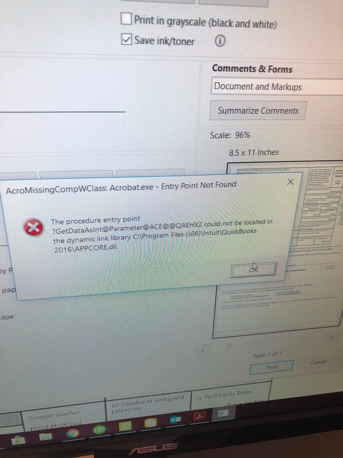 Getting this error when printing, This file is not even from quickbooks, it is from an email and I don't understand why its referencing QB