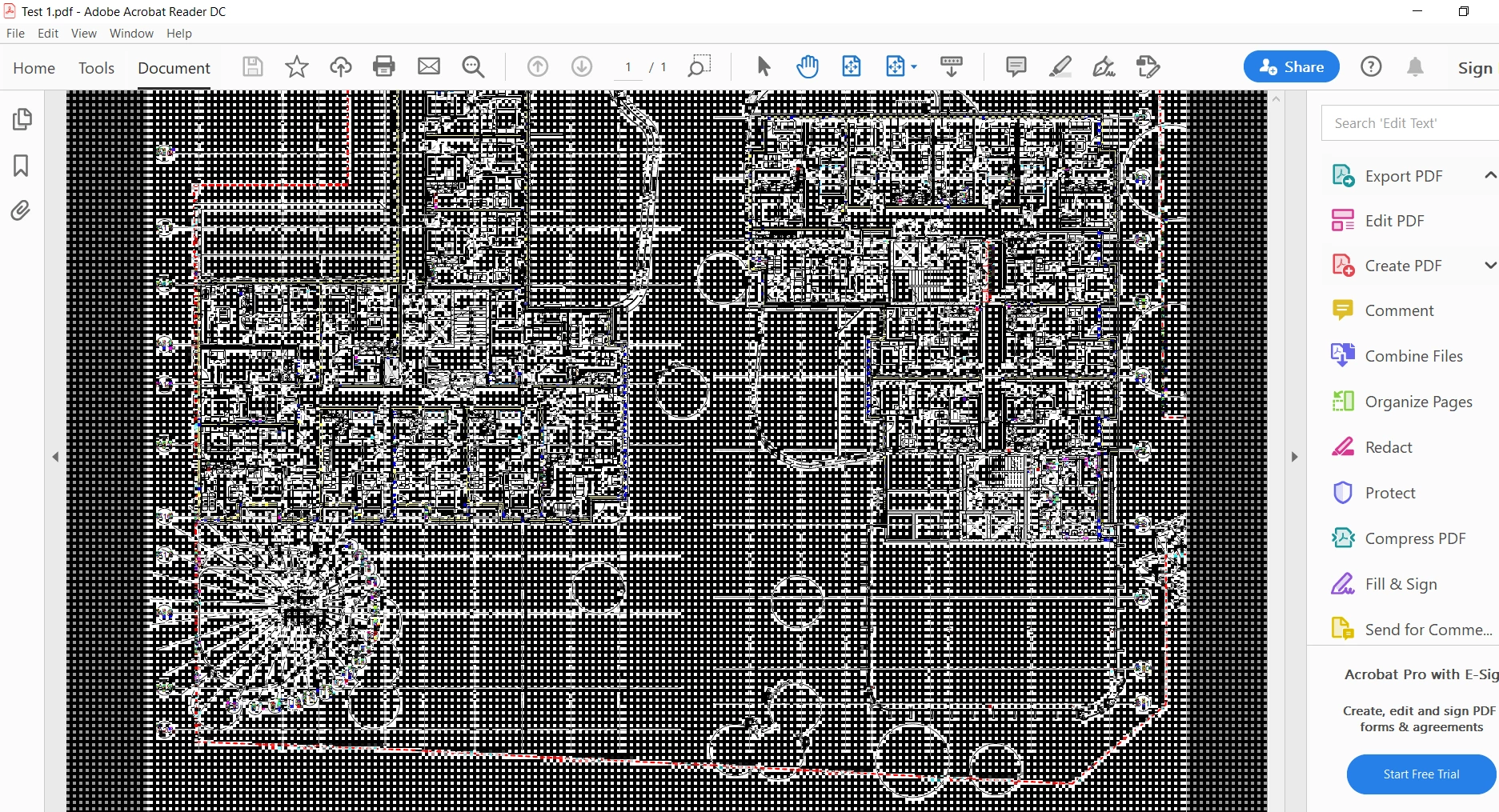 When opening a pdf in Acrobat Reader, it displays as a black pixellated screen flashes and is unreadable. see screen shot attached. Any advice welcome.
